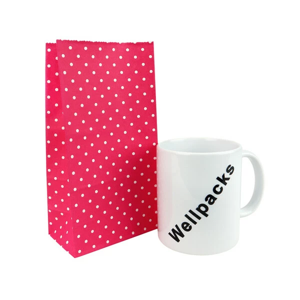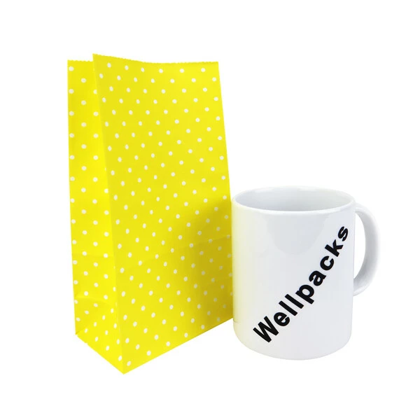 Паперовий пакет без ручок 100х65х200 мм жовтий крафт у горох 100 штук